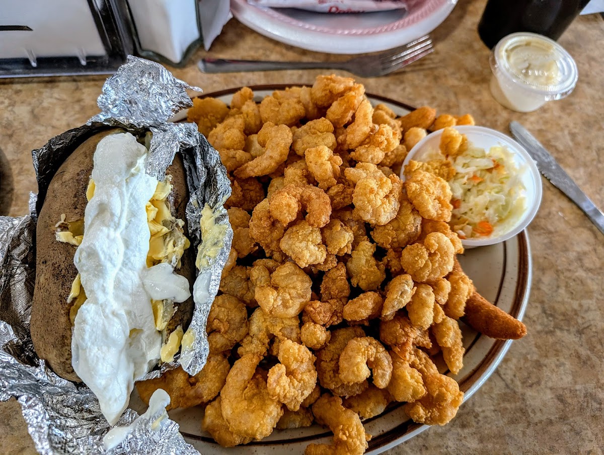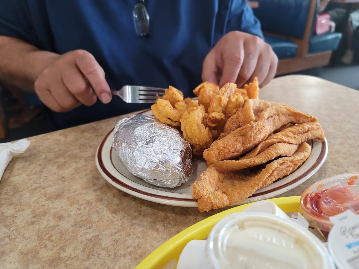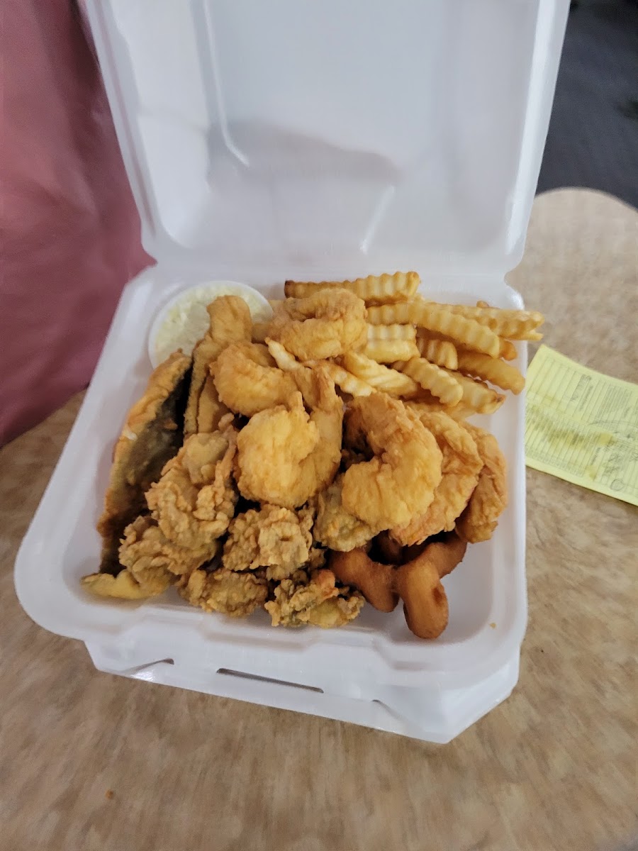 Ordered scallops and shrimp entree. Food came fast (scallops could have been cooked a little longer but they were still good). Big portions- very little difference between a small plate and a large plate. Don't waste your money on the upcharge for a large plate. Reminds me of Mayflower. Good tartar and cocktail sauces. If you dine in, seating seemed really low...not ideal for taller folks. Overall, my wife and I enjoyed our experience here. We'll go back again (probably for take out)
