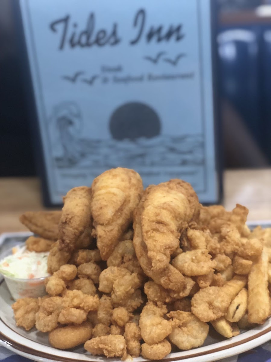 Delivering 280 chairs tends to lead to hunger! We was on bidness in High point. I asked a warehouse worker where the good seafood was. He said, "Tides Inn." Boy oh boy he was right! The atmosphere was great. We were greeted by a friendly young lady. The waitress was very attentive! The owner came to the table and talked to us,very nice guy! The food was very yummy! I had broiled shrimp,broiled flounder and broiled scallops,loaded potato,hush puppies, and oyster soup and a Arnold Palmer. This place is worth a ride from Winston Salem. I highly recommend this place!